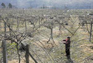冬季,隨著氣溫降低葡萄進(jìn)入休眠狀態(tài),園內(nèi)病源、蟲源也會尋找適宜的生存環(huán)境越冬,葡萄園內(nèi)的枯枝落葉、枝干上的老翹皮、雜草叢等均是良好的越冬場所。
