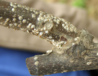 屬于同翅目,體外有蠟質(zhì)介殼。卵通常埋在蠟絲塊中、雌體下或雌蟲分泌的介殼下。 介殼蟲繁殖能力強,一年發(fā)生多代。卵孵化為若蟲,經(jīng)過短時間爬行,營固定生活,即形成介殼。介殼蟲抗藥能力強,一般藥劑難以進(jìn)入體內(nèi),防治比較困難。