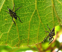 若蟲或成蟲用嘴刺吸汁液,使葉片出現(xiàn)淡白色斑點,危害嚴(yán)重時斑點呈斑塊狀,或刺傷表皮,使枝條葉片枯萎。