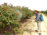 2、荔枝控梢后期:國光愛壯(烯效唑)稀釋400-500倍+國光甲稀釋500-600倍,控梢藥劑殘留少促花效果好。