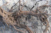 通常發(fā)生在苗木的根莖部或莖基部。感病根莖部皮層逐漸變成褐色壞死,嚴(yán)重的皮層腐爛。苗木受害后,影響水分和養(yǎng)分的吸收,以致生長不良,地上部葉片變小變黃,枝梢節(jié)間縮短,嚴(yán)重時枝葉凋萎,當(dāng)病斑環(huán)莖一周后會導(dǎo)致全株枯死。在潮濕條件下,受害的根莖表面或近地面土表覆有白色絹絲狀菌絲體。后期在菌絲體內(nèi)形成很多油菜籽狀的小菌核,初為白色,后漸變?yōu)榈S色至黃褐色,以后變茶褐色。菌絲逐漸向下延伸及根部,引起根腐爛。