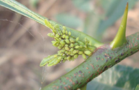 主要危害幼嫩組織,影響組織生長,嚴(yán)重時造成樹勢衰弱、大量落果。