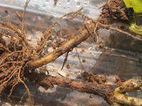 發(fā)生規(guī)律:病原線蟲在土壤中的病根、病果殼蟲瘤內(nèi)外越冬。主要靠病田土壤傳播,也可通過農(nóng)事操作,水流傳播,調(diào)運帶病莢果可引起遠距離傳播。干旱年份易發(fā)病,雨季早、雨水大,植株恢復快發(fā)病輕。砂壤土或沙土,瘠薄土壤發(fā)病重。