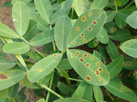 發(fā)病規(guī)律:春花生早播病輕,秋花生早播則病重。施氮過多,密度大,通風透光不良,排水條件差,發(fā)病重。水田花生較旱田病重。高溫、高濕、溫差大利于病害蔓延。