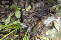 癥狀:病害多在花生成株期發(fā)生,主要為害莖部、果柄及莢果。發(fā)病初期病部變褐軟腐,其上出現(xiàn)波紋狀病斑。病斑表面長出一層白色絹狀絲菌絲體,在合適條件下菌絲蔓延至植株中下部莖桿,并在分枝間、植株間蔓延。土壤潮濕隱蔽時,病株周圍土表植物殘體和有機質上也布滿一層白色菌絲體。在菌絲體中形成很多球狀菌核。受害莖基部組織腐爛,皮層脫落,剩下纖維狀組織。病株葉片變黃,邊緣焦枯,最后枯萎而死,受侵害果柄和莢果長出很多白色菌絲,呈濕腐狀腐爛。