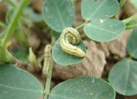 癥狀:在花生尚未出土時,蚜蟲就能鉆入土內(nèi)在幼莖嫩芽上危害,花生出土后,多在聚集頂端心葉及嫩葉背面吸取汁液,受害后的葉片嚴重卷縮。開花后主要聚集于花萼管及果針上危害,果針受害雖能入土,但莢果不成實,秕果多。受害嚴重的花生,植株矮小,生長停滯。猖獗發(fā)生時,蚜蟲排出大量蜜露,引起霉菌發(fā)生,使花生莖葉變黑,甚至整株枯萎死亡。