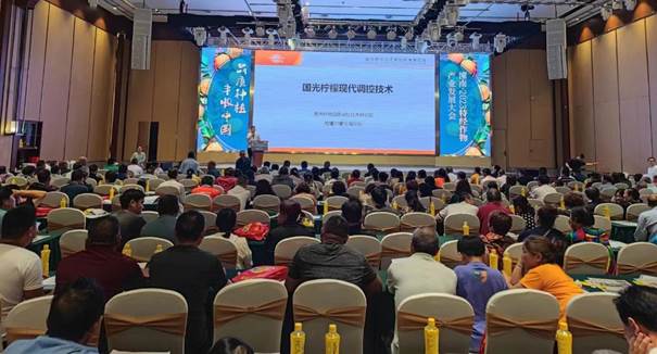 “檸”心聚力,筑“檬”未來!6月18日,由國光農(nóng)化承辦的“潼南2023特經(jīng)作物產(chǎn)業(yè)發(fā)展大會”如期召開,來自各區(qū)相關(guān)單位領(lǐng)導(dǎo)專家、種植戶等400余人參會。會上我司檸檬研究所陶老師分享了“國光檸檬現(xiàn)代調(diào)控技術(shù)”,與會代表現(xiàn)場體驗國光依貝新智能機械在果樹上的應(yīng)用效果。