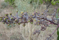 癥狀:是花期的主要病害,同時(shí)危害幼果、嫩葉,嚴(yán)重影響果實(shí)產(chǎn)量。該病主要為害花序、幼果和嫩葉;ㄐ蛑W钊菀资芨腥,梗上病斑褐色,病部常見白粉狀物,花梗環(huán)縊狀死亡,其上花朵、幼果隨之枯死脫落。嫩葉癥狀多在葉背,病葉常扭曲、畸形。幼果受害,果面出現(xiàn)近圓形的斑點(diǎn),嚴(yán)重時(shí)幼果全部被白粉狀物覆蓋,造成大量落果。
