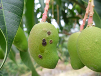 癥狀:薊馬是芒果產(chǎn)區(qū)梢期、花期和幼果期危害較為嚴(yán)重的害蟲之一。薊馬好吸食幼嫩組織。吸食果汁后,果表面起小疙瘩造成果皮粗糙,危害嚴(yán)重時(shí)候造成芒果失去商品性。危害較輕者也是芒果生產(chǎn)后期產(chǎn)生“露水斑”、“老年斑”的可能原因之一。
